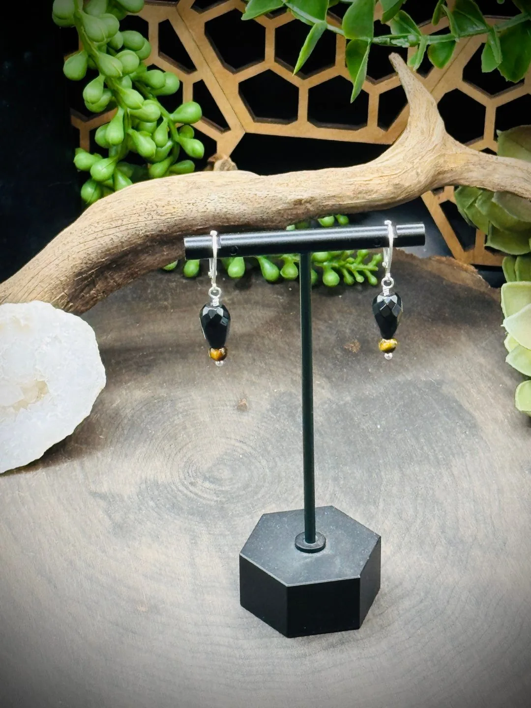 All About the Beads Earrings Black Obsidian & Tigers Eye Beads. With Lever Back Ear Wires.