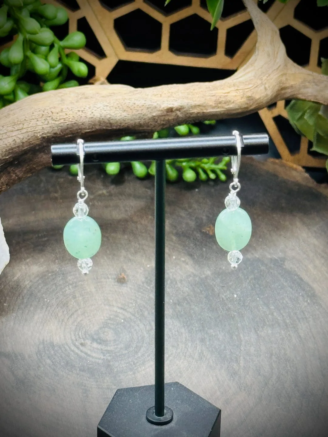 All About the Beads Earrings Clear Quartz Crystals & Green Aventurine Beads. With Lever Back Ear Wires.