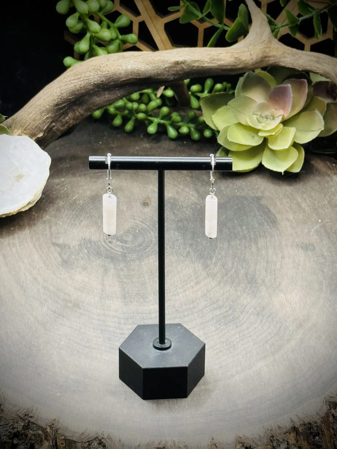 All About the Beads Earrings Vintage Rectangle Rose Quartz Beads. With Lever Back Ear Wires.