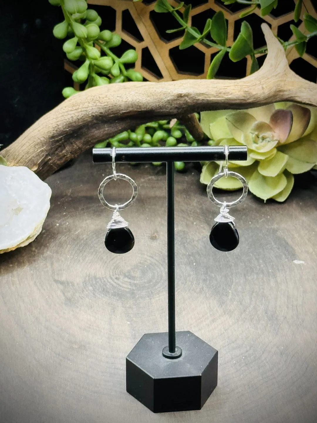 Dainty Hoops with Black Obsidian Teardrops