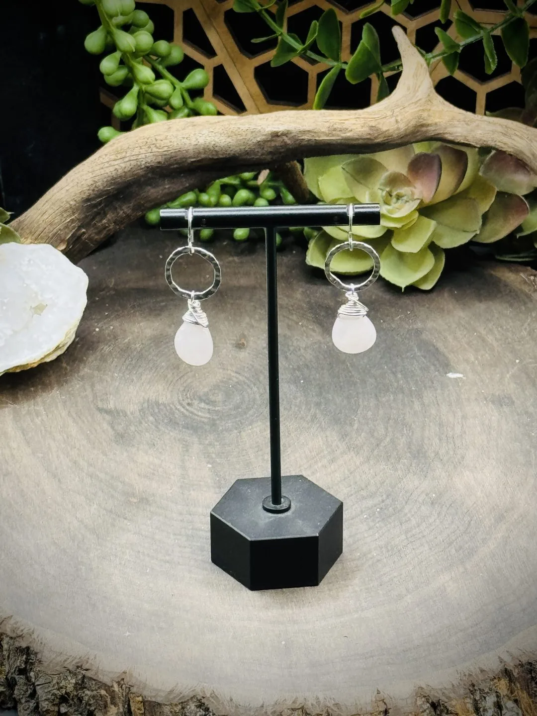 Dainty Hoops with Rose Quartz Teardrops