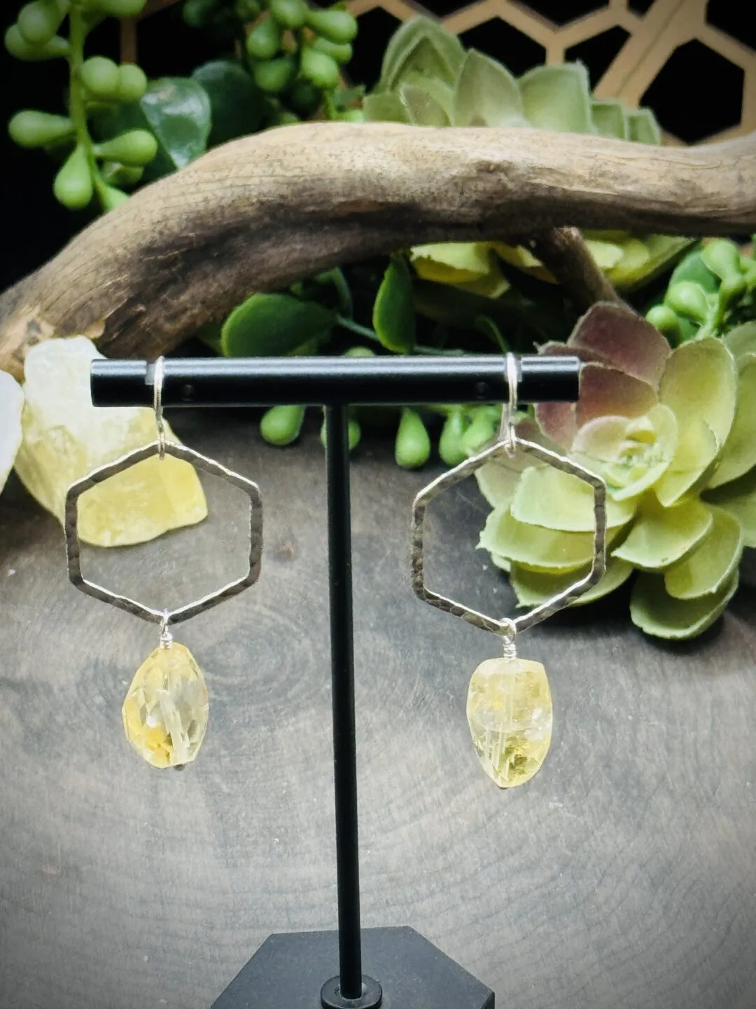Daring Fine Silver Honeycomb Hoops with Large Citrine Beads