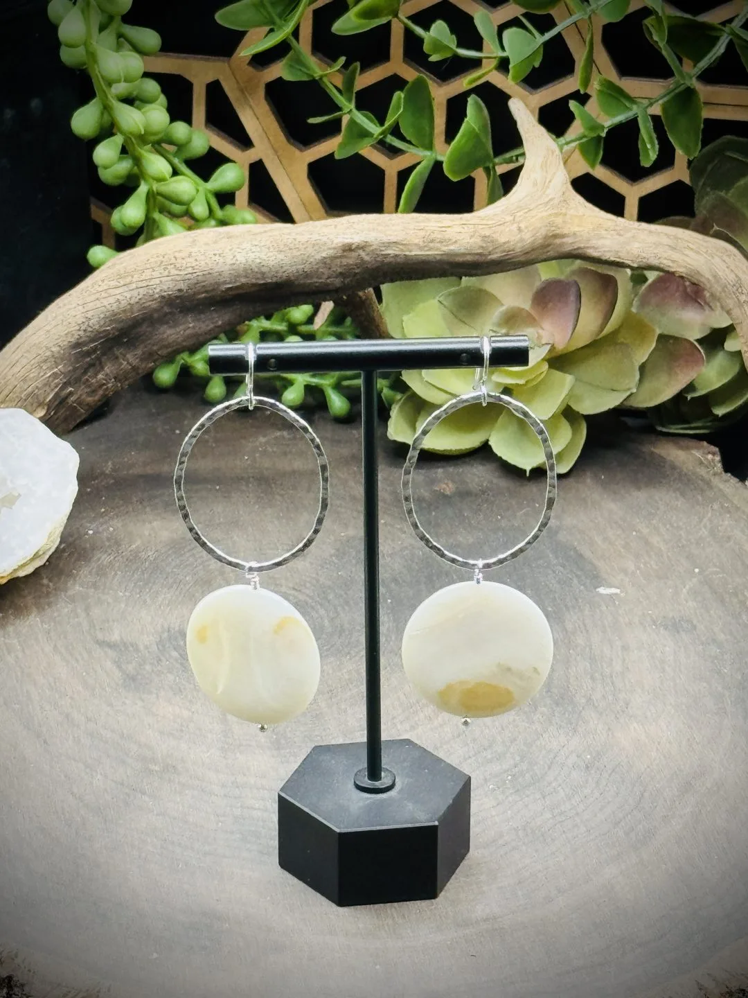 16g Fine Silver Large Oval Hoops with Natural Shell.