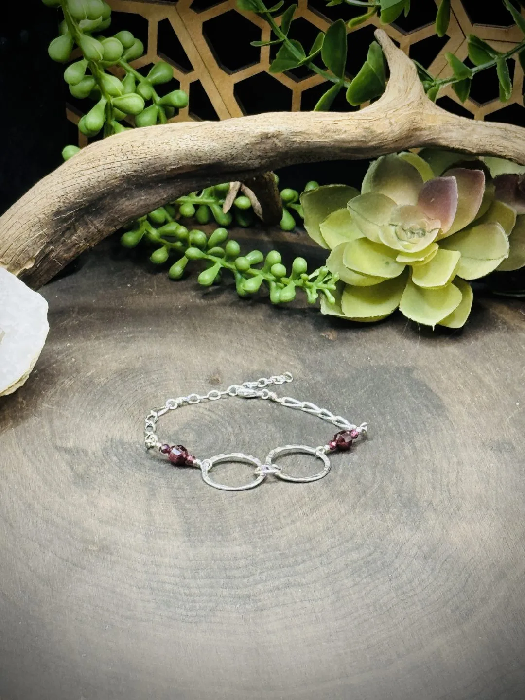 Fine Silver & Sterling Silver Paperclip Chain Bracelet with Garnet Beads