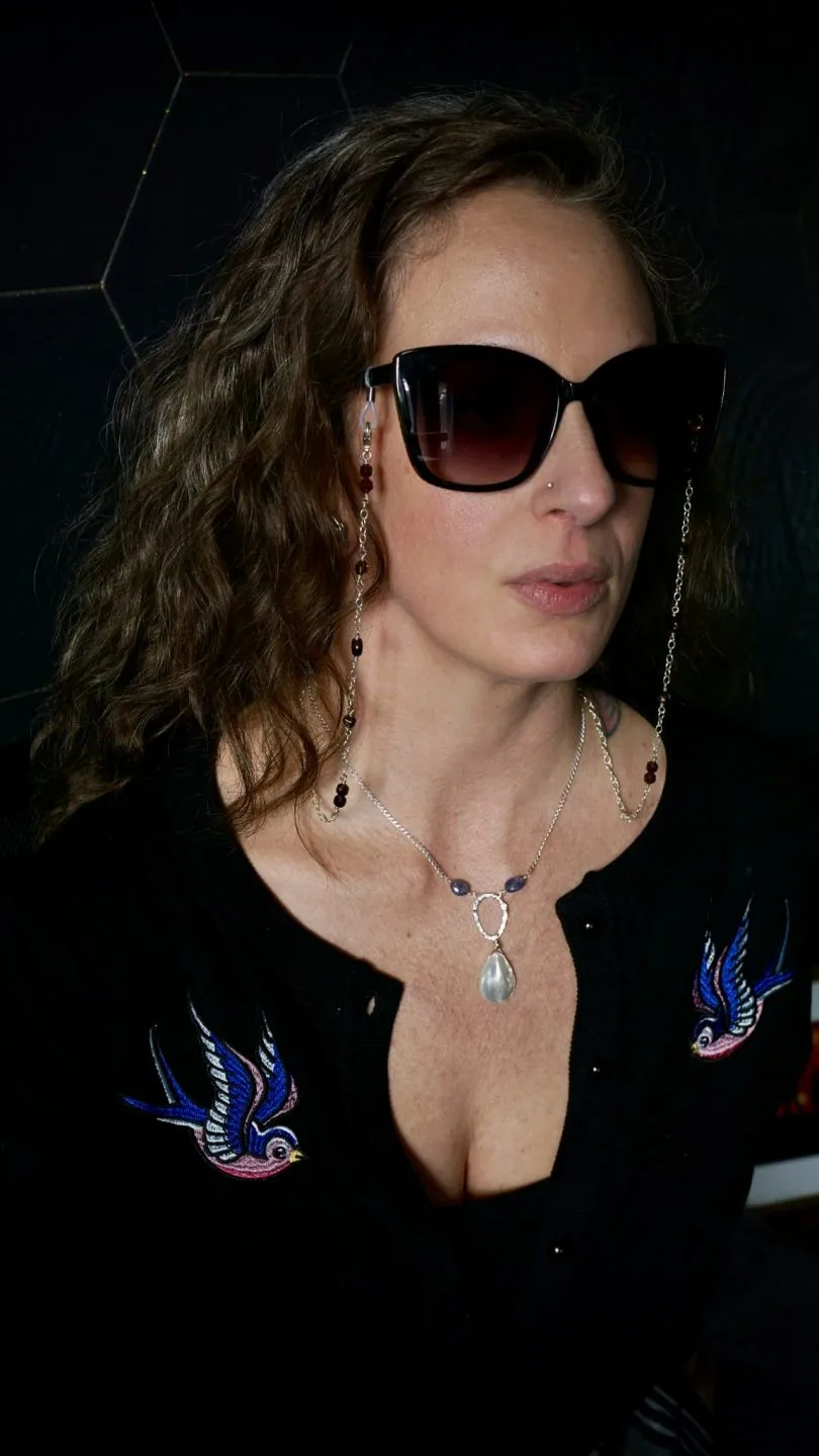 31 inch Gemstone Eyeglass Sterling Silver Chain with Jade & Onyx Beads. The chains come with two sterling silver lobster clasp to make it easy to replace the elastic silicone ends connectors. The chains come with two pairs of end connectors.