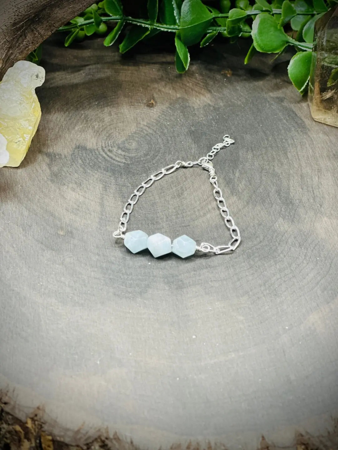 Sterling Silver Paperclip Chain Bracelet with Aquamarine