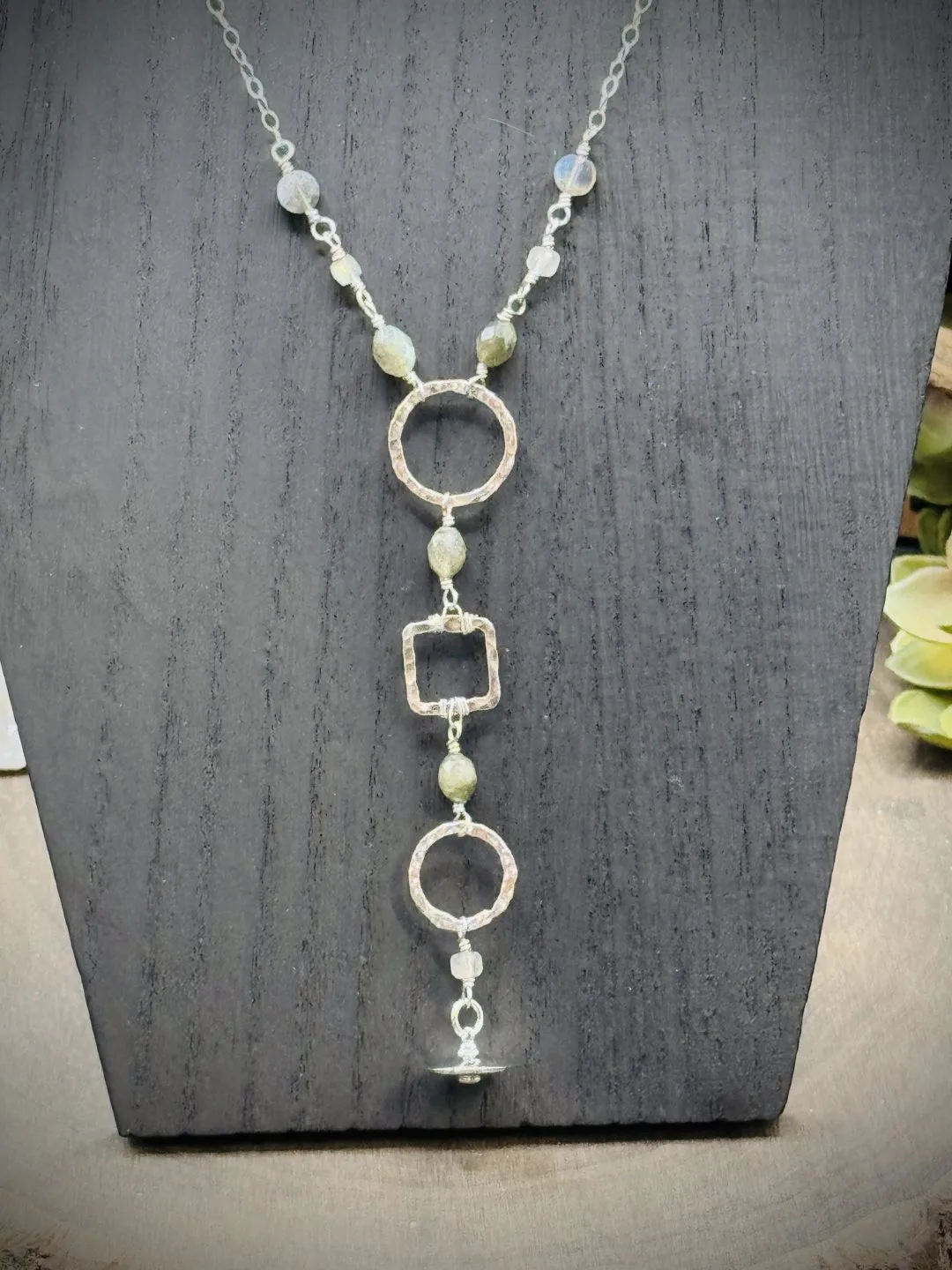 Three Elegant Hoop Necklace with Labradorite & Sterling Silver Flying Saucer