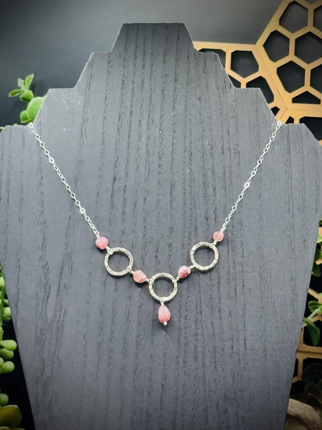 Three Elegant Hoop Necklace with Pink Tourmaline