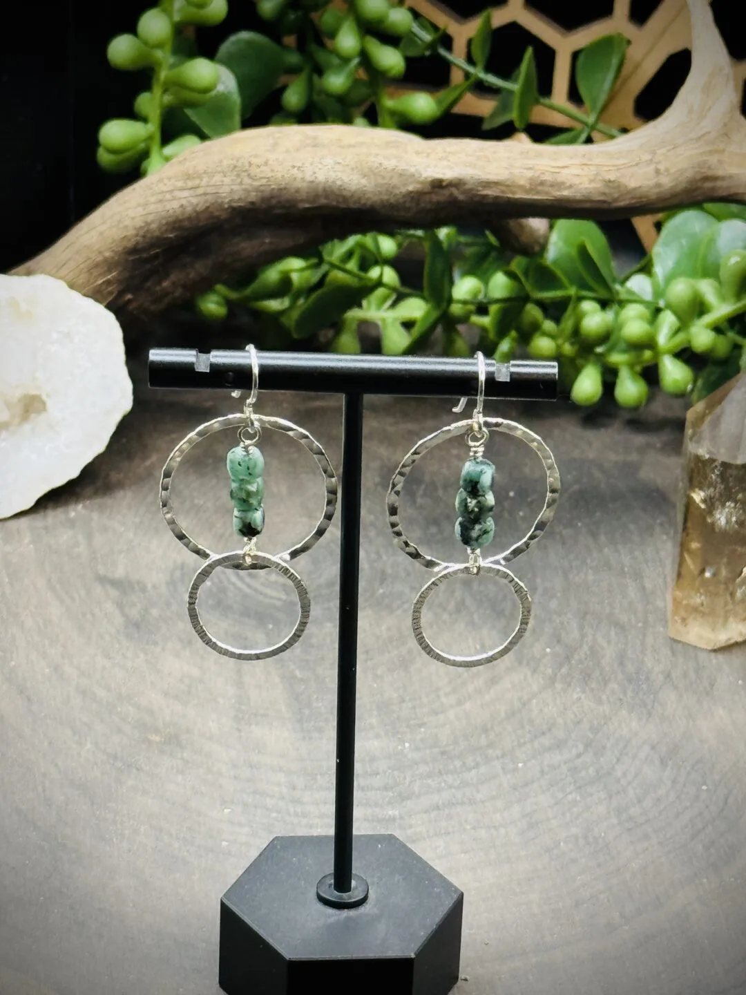 16g One Medium Round Fine Silver Rounds & One Small Fine Silver Round with Square Emerald Beads.